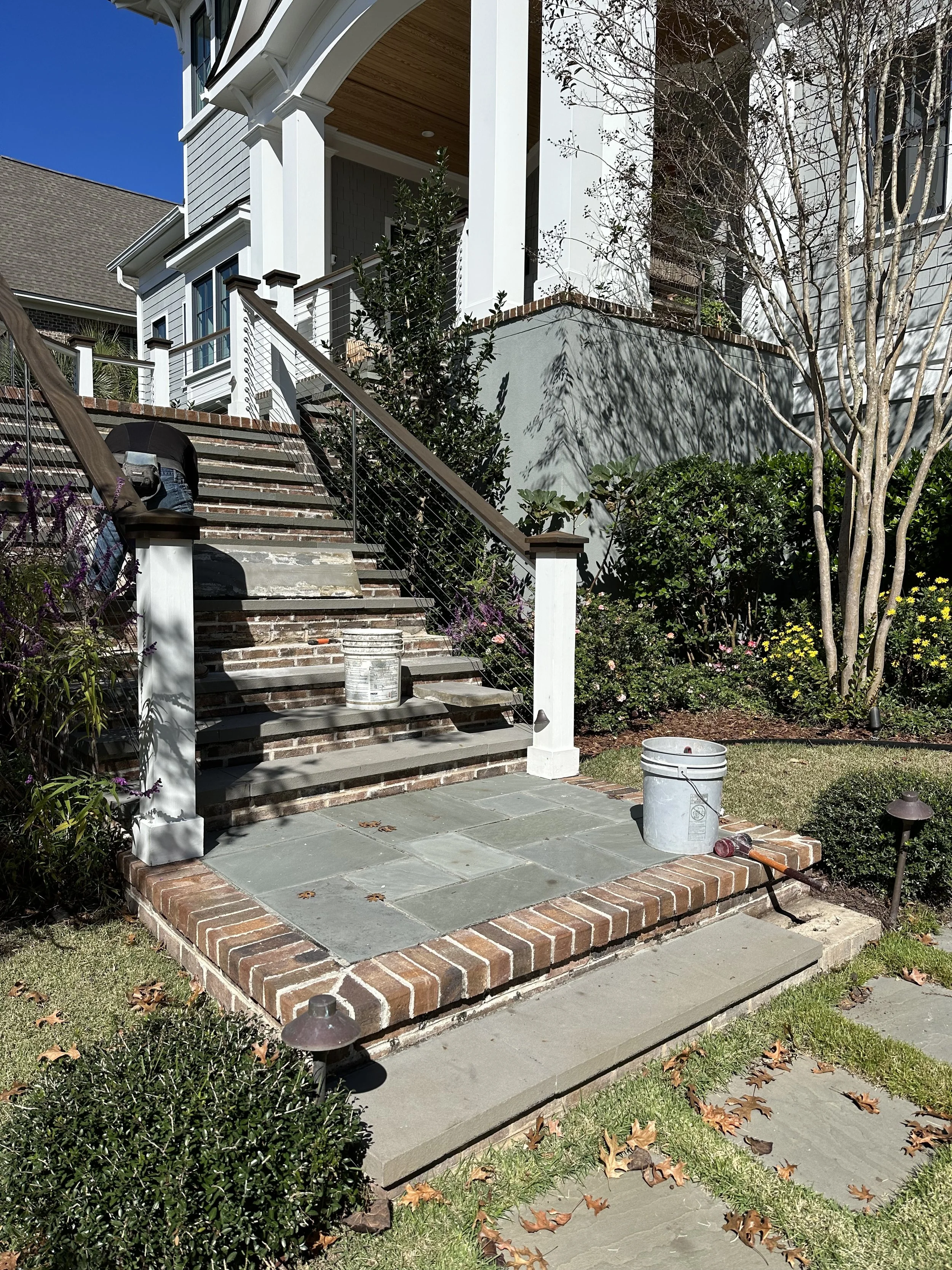 Elevate Your Entrance and Simplify Maintenance with Brick & Natural Stone Steps Brick and natural stone steps add timeless elegance and enduring beauty to your home's exterior. These high-quality materials are crafted for lasting performance, requiring minimal upkeep to maintain their inviting look for years to come.